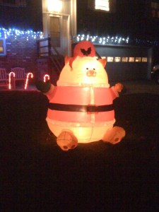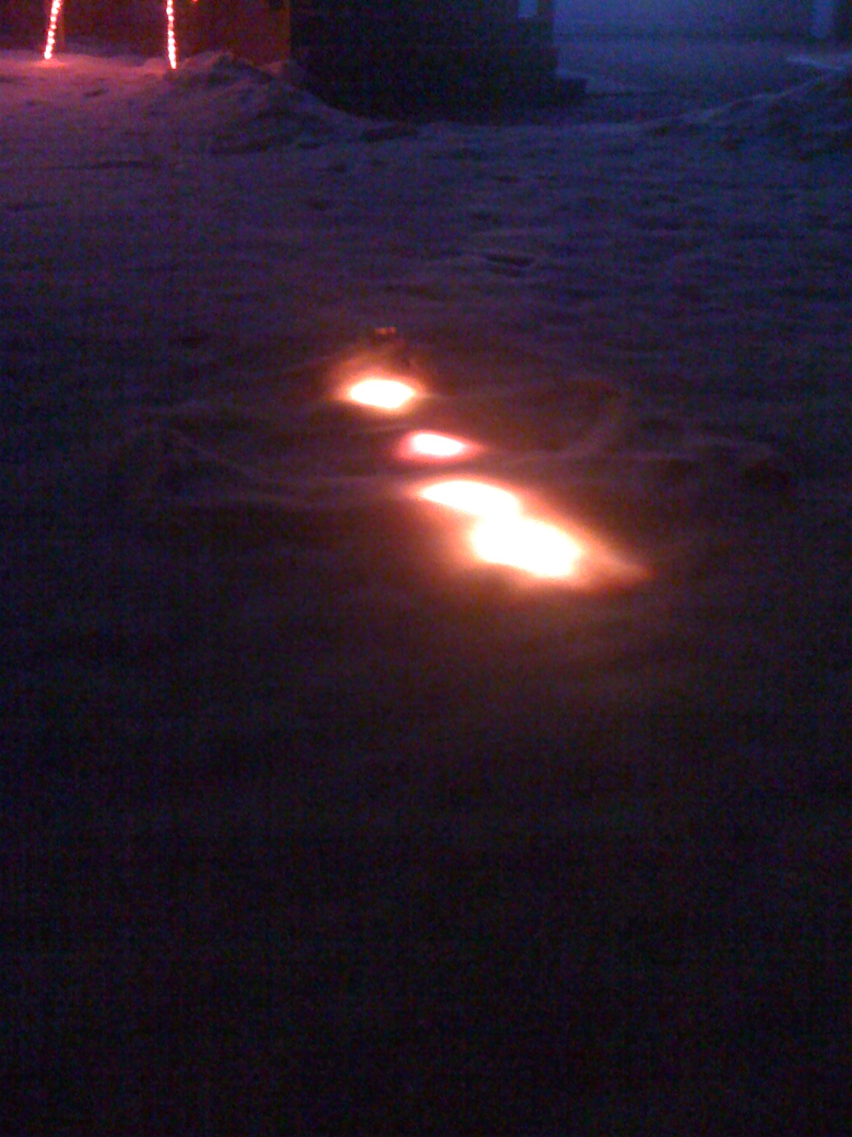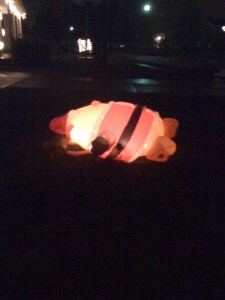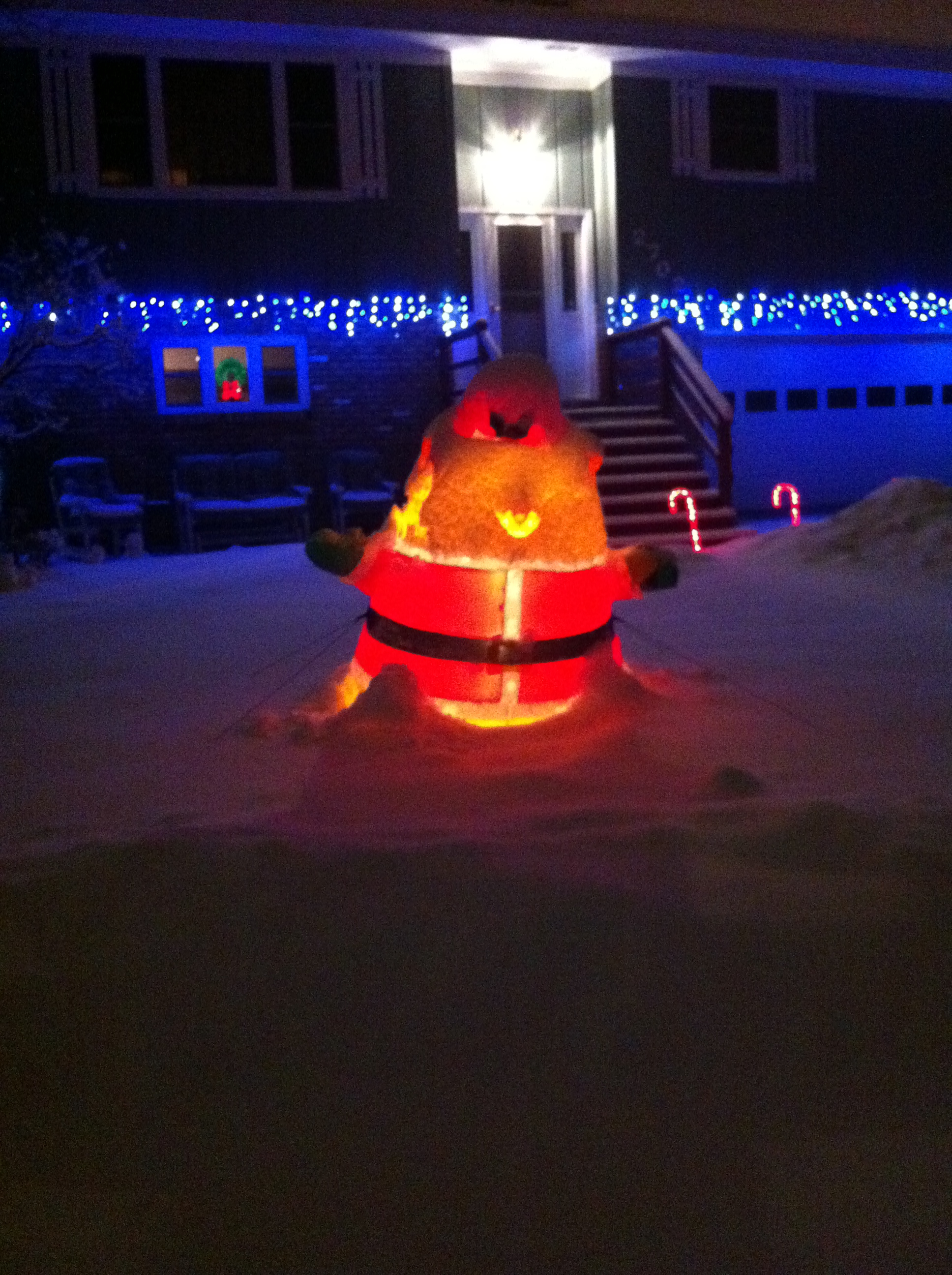 It was about this time that Bosco started calling the ugly thing “Fugly”—will let you guys figure that out for yourselves. Night after night, Fugly swayed back and forth, mocking, just mocking us. Come morning, Fugly was just a harmless blob on the ground. Even a coating of snow could not keep Fugly down once the sun set.